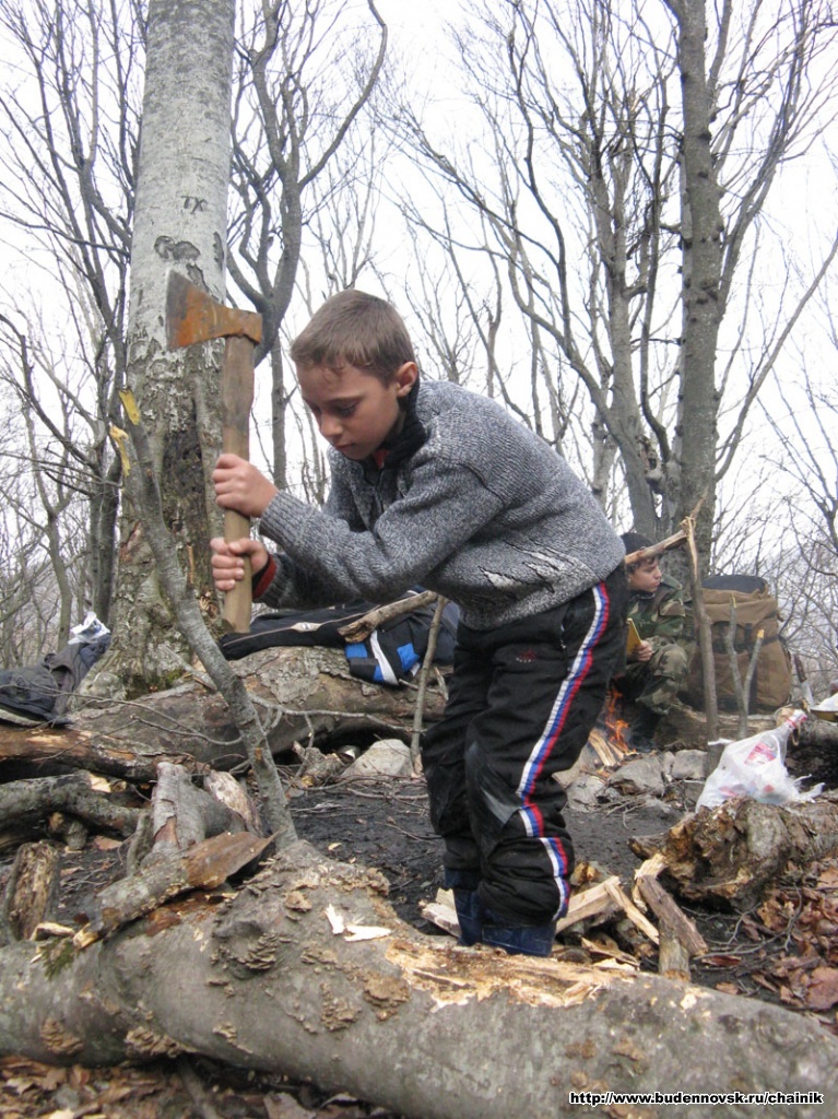Дима рубт дрова.