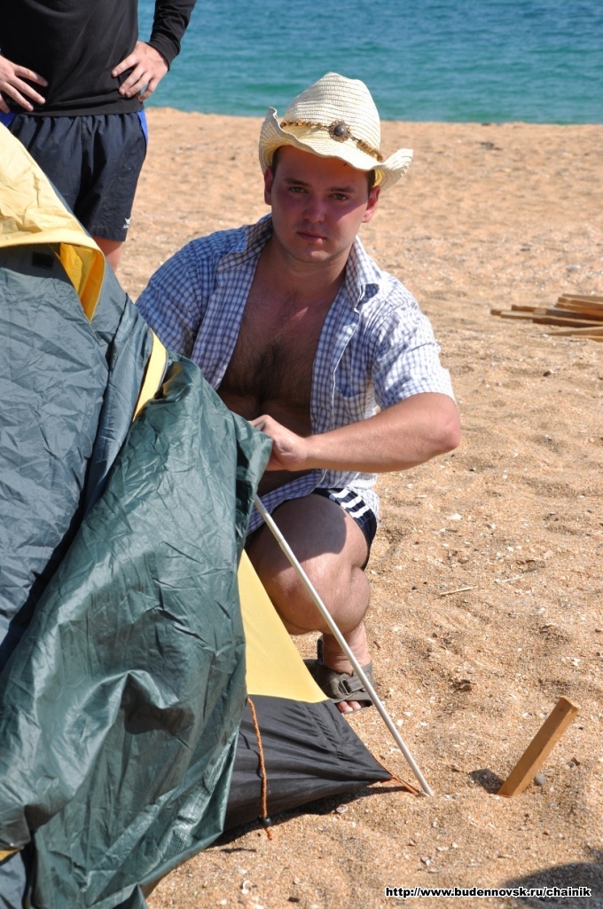 Коля ставит палатку